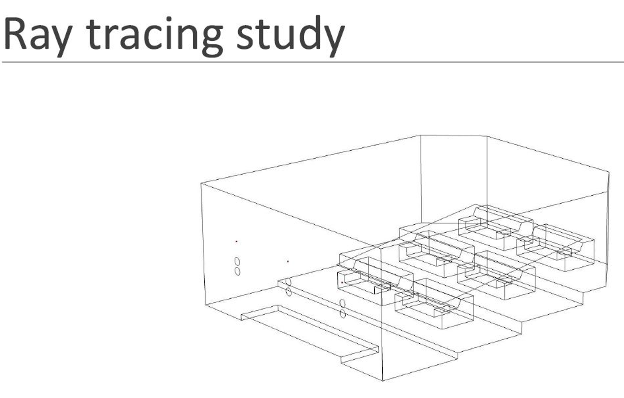 When designing and optimizing acoustic systems for large video walls, it's crucial to have precise control over sound diffusion. This requires addressing excessive glass reflections and concentrating the optimal RT325 Coherent Diffusion payload just in the very delimited listener target. To achieve this, CINERAMAX experts utilize advanced techniques like FEM/BEM and Eigen frequency LF analysis with a specific set of custom developed tools.