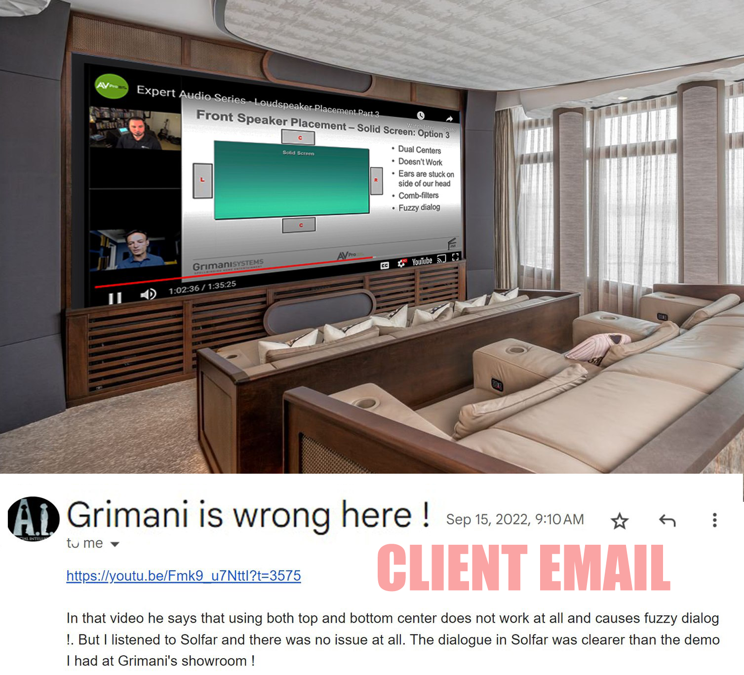 60 degree dispersion is the only way to handle center channel on a videowall immersive lounge.