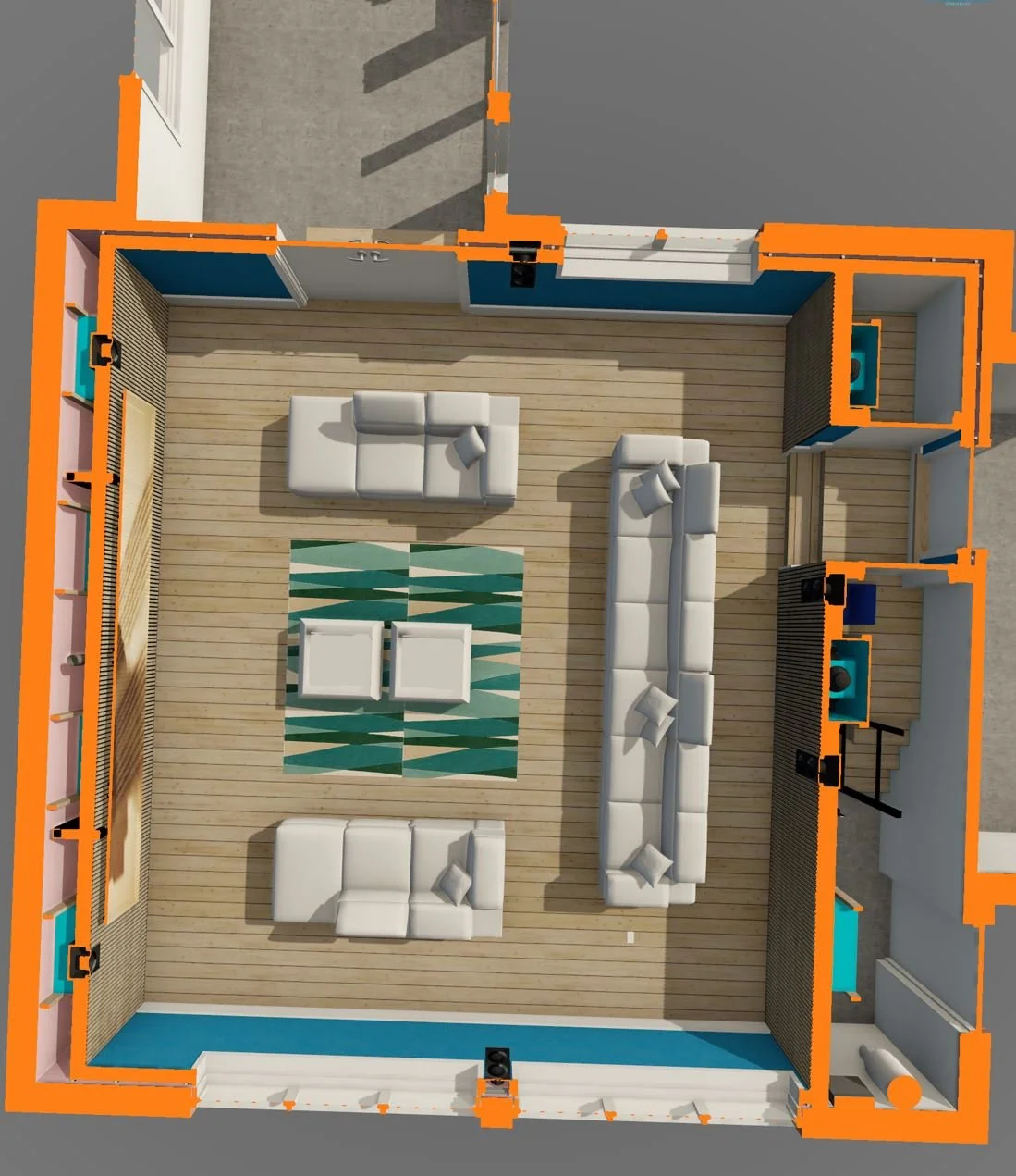 With 7dB room gain we come up to 98dB. Meaning we need 27dB more, 4.5 times more woofers = 23 woofers, so probably move it up to 32 woofers to get 8 x 4.